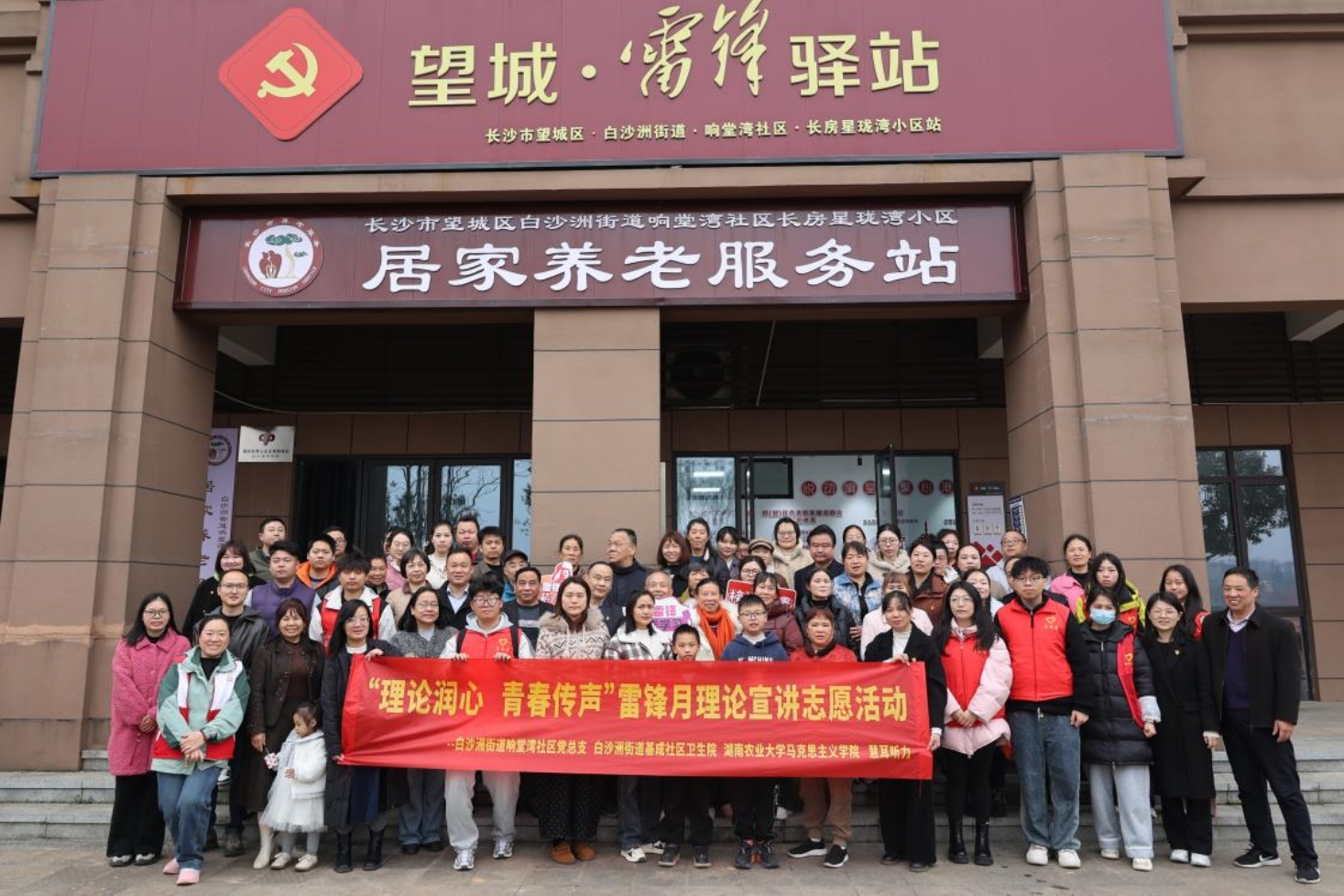 3月15日上午,湖南农业大学马克思主义学院青年志愿者服务队携手长沙市望城区白沙洲街道响堂湾社区党总支、白沙洲街道基成社区卫生服务中心及慧耳听力,在星珑湾居家养老服务站开展“理论润心,青春传声”雷锋月理论宣讲志愿服务活动。活动以“理论宣讲+健康义诊+爱心义剪”的多元形式,推动雷锋精神从理论走向实践、从课堂走进社区。