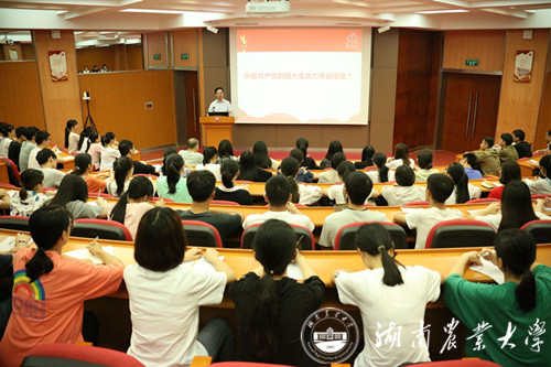 “中国共产党成立之初只有五十几名党员,当年如此弱小的党,为什么会成为今天的世界第一大政党,并不断引领中华民族走向复兴?它强大的生命力来自哪里?” 陈弘书记一开讲,就以“问题意识”紧扣学生思维,启发学生对“初心和使命”的深入思考。