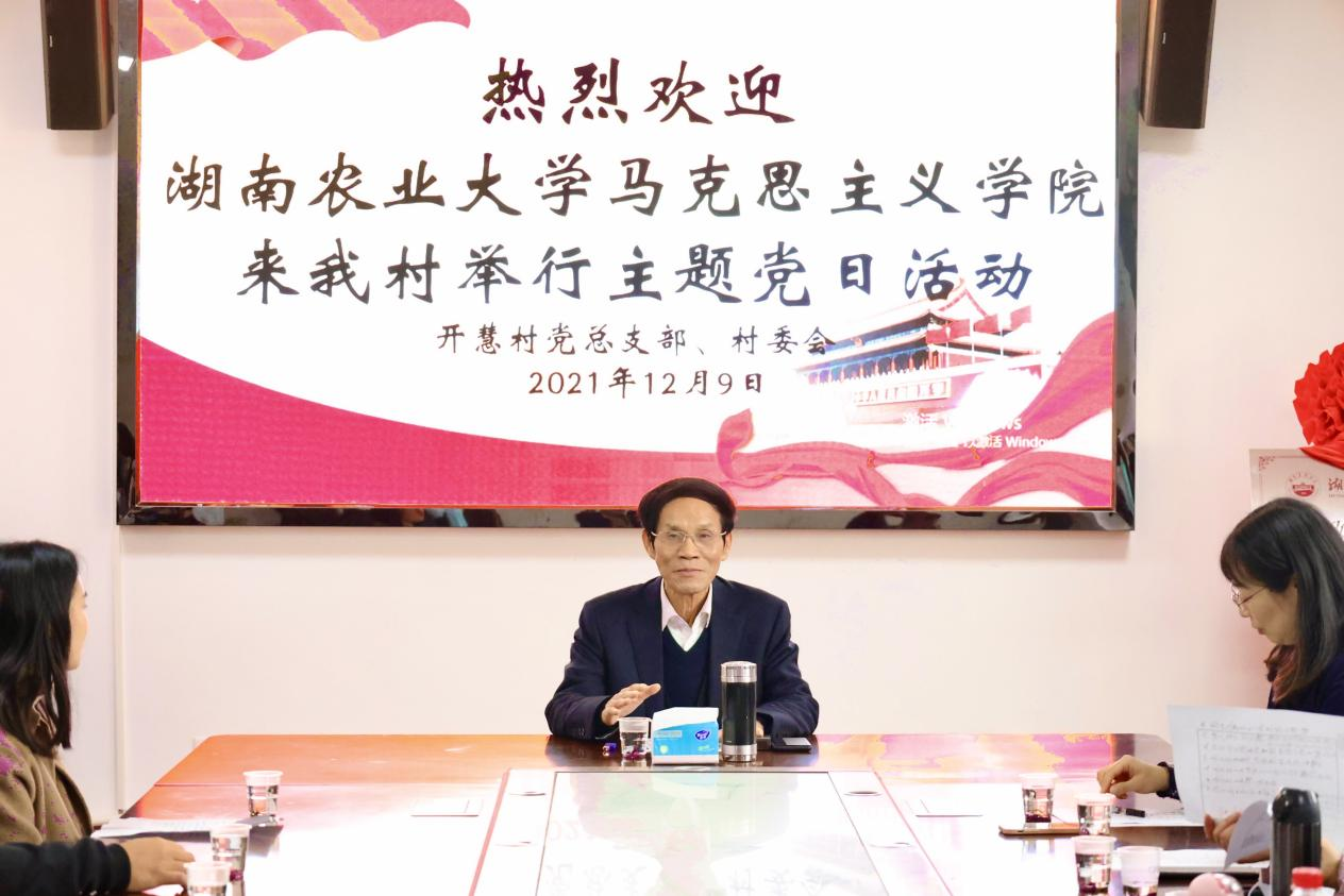 本次活动邀请到开慧村党支部第一书记朱有志为马院全体研究生开展党课教育。朱书记以《学马列,信马列,教马列,用马列》为主题,从七个方面讲述了自己深耕基层12年的实践经历,表达了自己对马列主义的信仰,并介绍了农村基层党建的心得体会。他用极具唯物辩证法思维的言语给大家上了一堂生动的思政课,并告诫马克思主义学院全体研究生要学以致用,当好马克思主义理论的学习者、实践者和传播者,为马克思主义理论研究添砖加瓦。