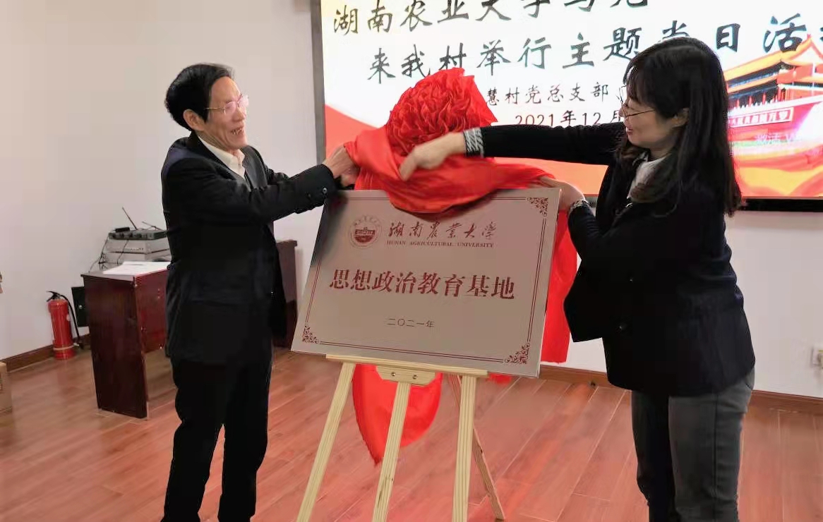 随后,马克思主义学院党总支书记唐琳教授邀请朱有志书记共同为湖南农业大学思想政治教育基地揭牌。唐书记说到,在开慧村建立思想政治教育示范基地扎实推进学院思想政治教育工作的重要举措,学院会充分发挥红色资源优势,积极开辟思想政治教育阵地,全面提升思想政治教育成效。