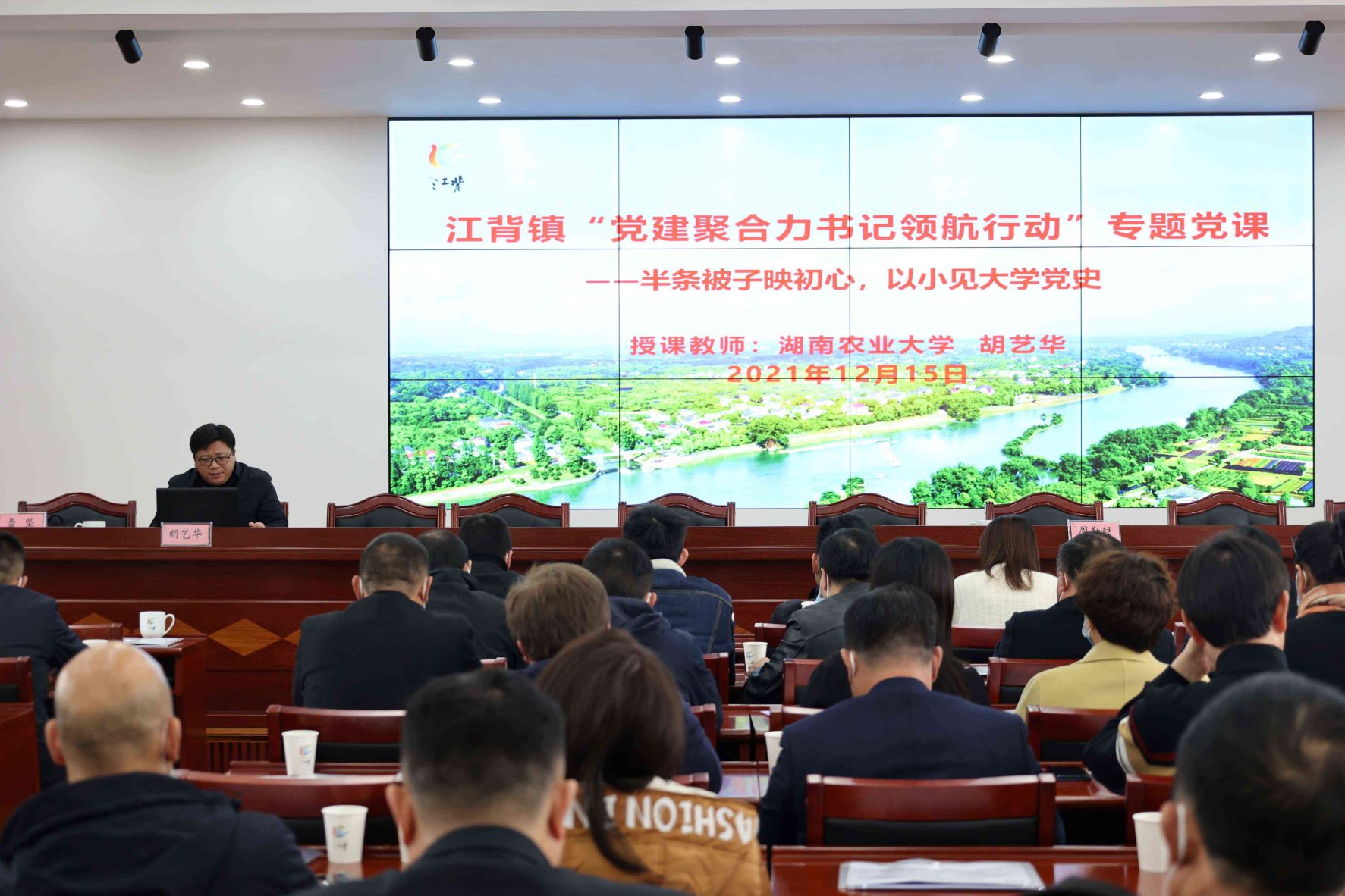 活动伊始,湖南农业大学马克思主义学院院长胡艺华教授以《半条被子映初心,以小见大学党史》为主题给江背镇企业家们上了一堂生动的党课。胡院长以《十送红军》为引入,带领大家追寻“半条被子”蕴含的初心力量。“半条被子”的故事通过小物品承载大情怀,小时空浓缩大历史,小人物展现大格局,小事件彰显大逻辑,小情节传递大温暖,这“六小六大”正是血浓于水的军民鱼水情的生动体现,正是我们党“江山就是人民,人民就是江山”的庄严宣誓!