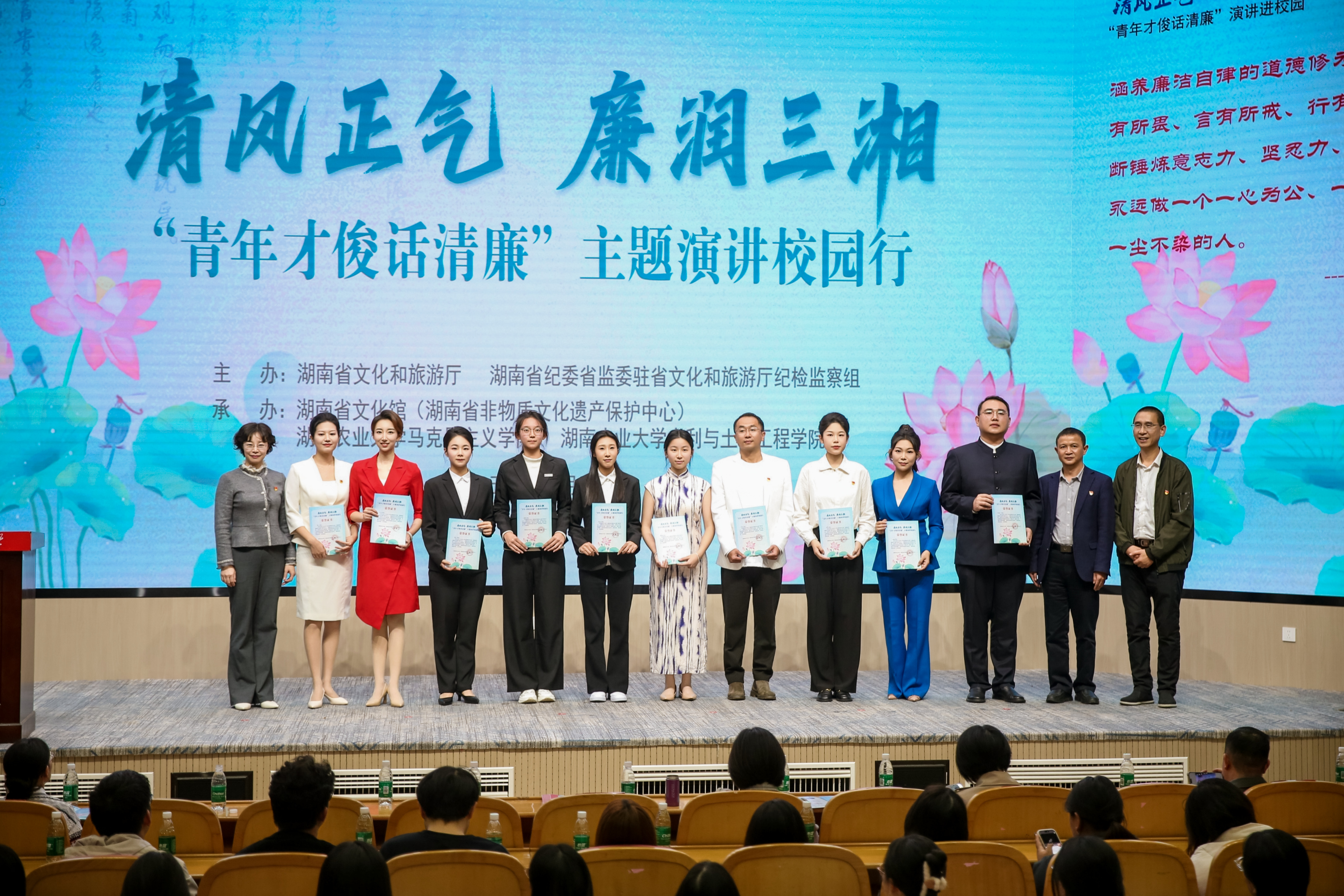 本次主题演讲校园行活动不仅是一堂别开生面的思政课,更是深入贯彻落实中央关于加强新时代廉洁文化建设要求的重要举措。活动通过以讲促学、以奖励行的方式,将廉洁文化教育与青年成长紧密结合,不仅丰富了校园廉洁教育形式,更在青年学子心中播下了廉洁自律的种子,为培育担当民族复兴大任的时代新人、推进清廉湖南建设注入了持久的青春动能。(审稿人:汤帮耀)