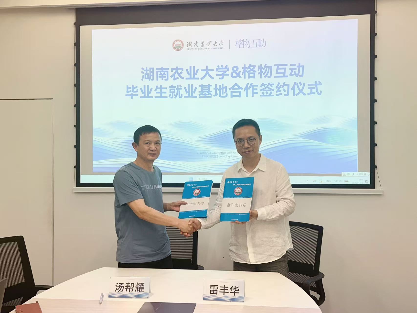 汤帮耀表示,学院将以此次合作为契机,充分发挥马克思主义学院学科优势与人才优势,持续深化与企业的协同育人机制,不断提升毕业生专业素养与就业竞争力,为企业输送更多政治素质过硬、综合能力突出的高素质应用型人才。黄佳彦表示希望以就业基地为纽带,实现资源共享、优势互补、合作共赢、共同发展。座谈会上,湖南农业大学马克思主义学院与深圳市格物互动文化传播有限公司正式签订就业基地合作意向书,为毕业生更高质量就业拓展了新渠道。